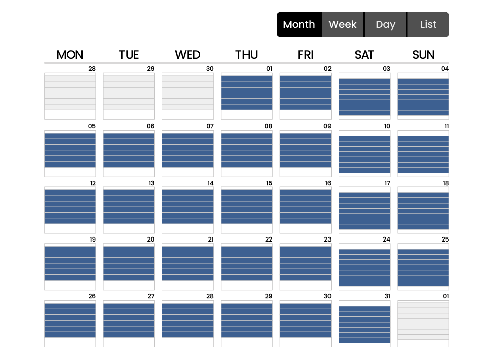 With DXPro, scheduling visibility spans hourly, daily, weekly, and monthly views, and you can filter by service or order type to easily respond to shifting demand.